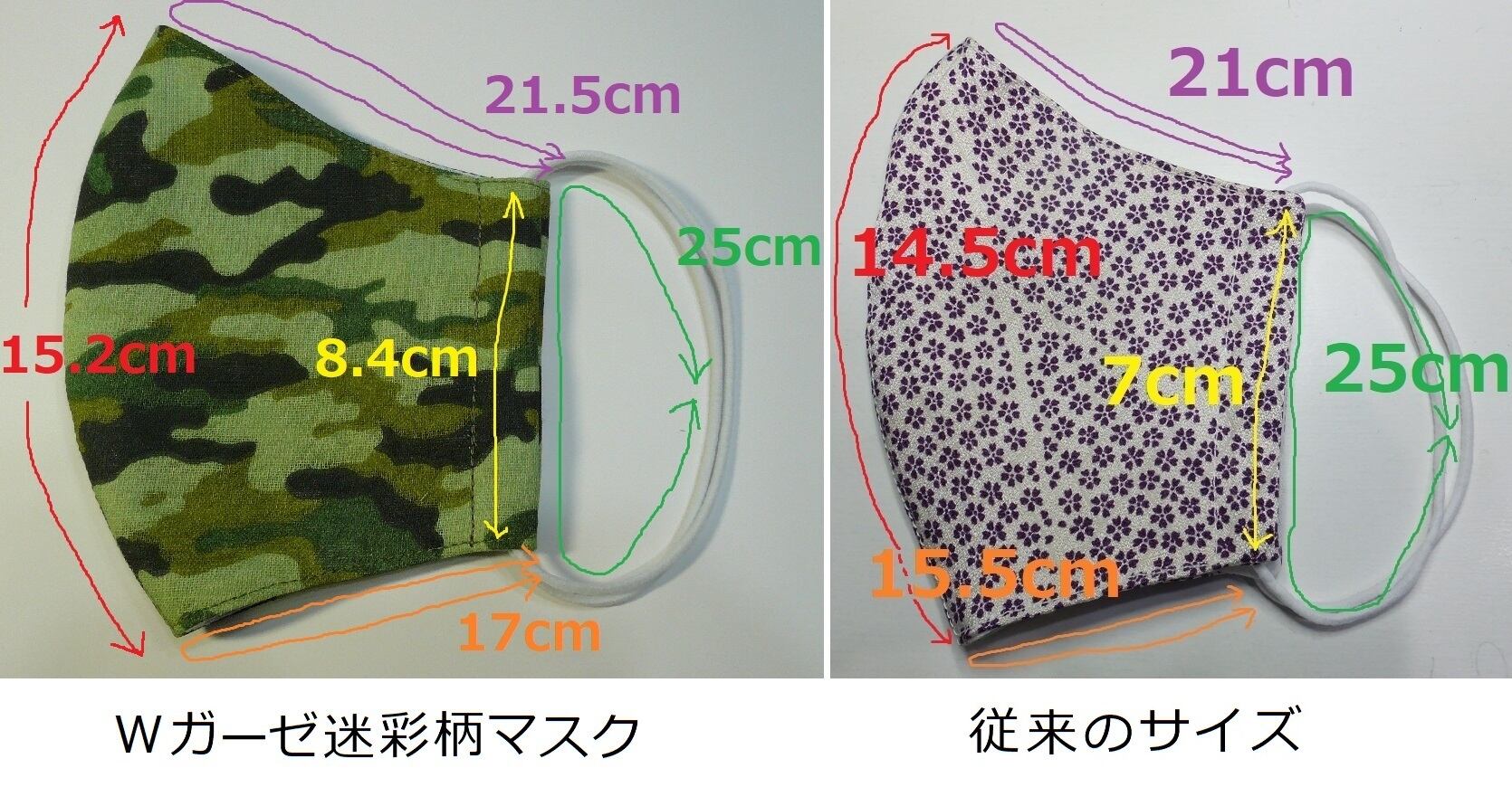 男子用、ゆるいマスクがお好みの方のために今までのサイズより一回り大きいサイズにしました。画像5枚目・6枚目・7枚目。